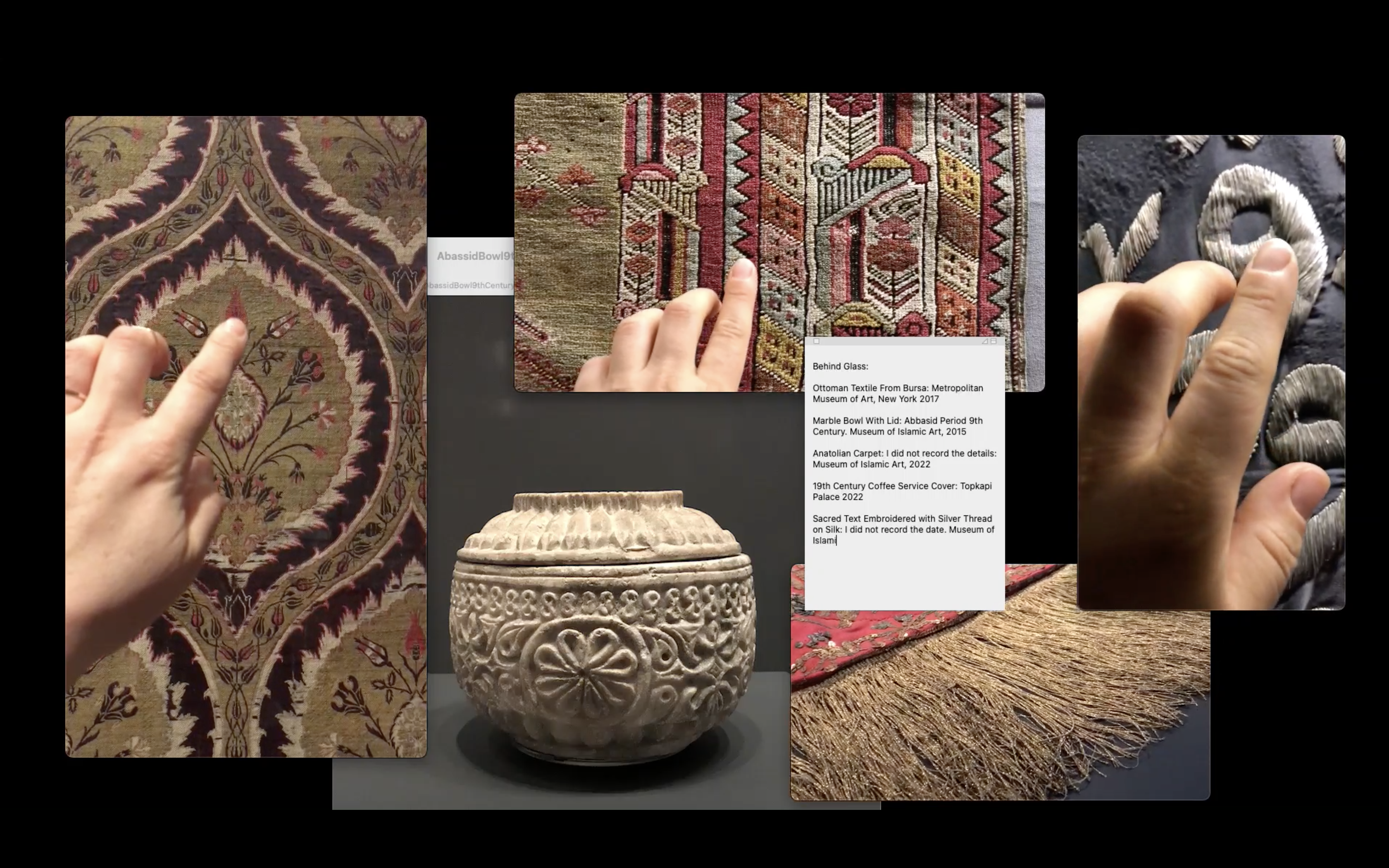 Conceived of in response to Adolf Loos’ 1913 influential essay “Ornament and Crime,” Tracing Ornament (2022) brings together years of research engaging with museum collections, archives, and archaeological sights from present-day Turkey in an attempt to recuperate ornament from its historic characterization and dismissal within Modernist Art History.